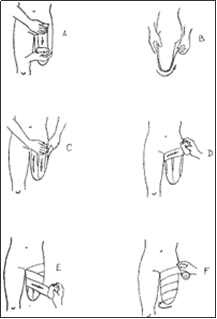 Comenzar el vendaje a partir de la ingle, bajando la venda sobre la cara anterior del muslo .