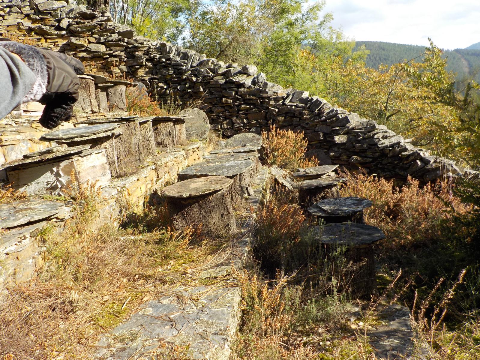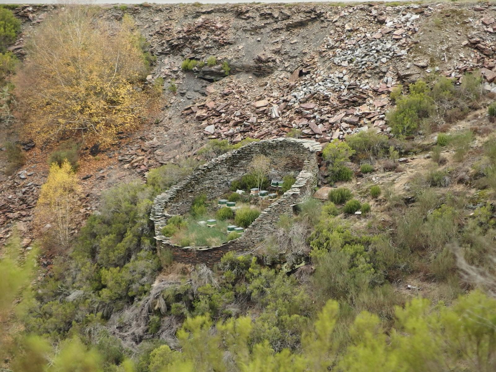 A superficie interna da albariza ordénase en longas e estreitas terrazas graduadas onde se instalan as colmeas. A relativa abundancia destas construcións delata a importancia que antigamente debeu de ter nestas terras a apicultura.