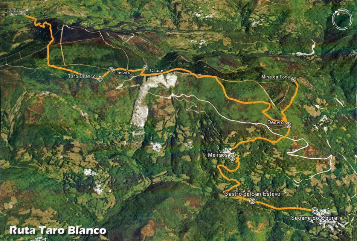 Se no canto de tomar este desvío seguimos de fronte, a un 5 km. chegamos ao Taro Blanco, unha gran masa rochosa de calcaria desde a que se divisa unha gran vista panorámica da Serra do Caurel e do Valle do Rio Pequeno